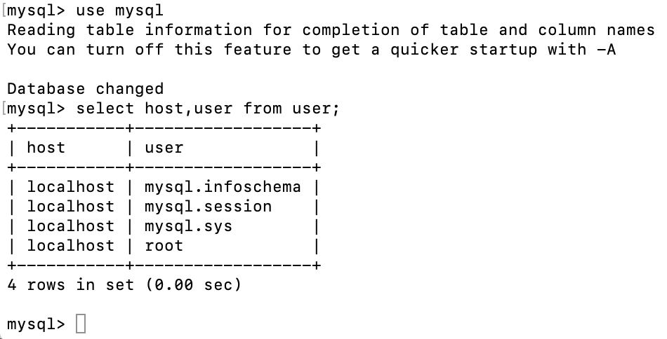 mysql> use mysql