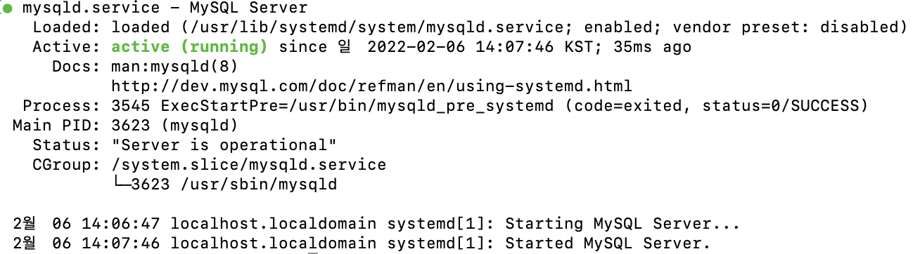 systemctl status mysqld # 서비스 구동 여부 확인