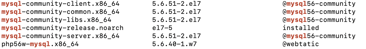 yum list installed | grep mysql