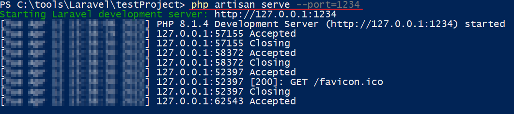 php artian serve --port=포트번호
