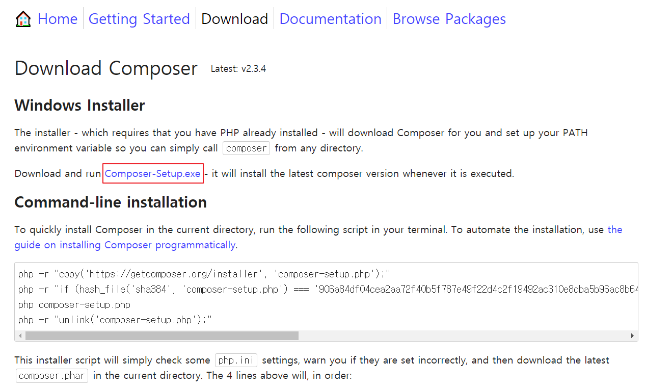 composert exe파일 다운로드 ☞ Composer (getcomposer.org)