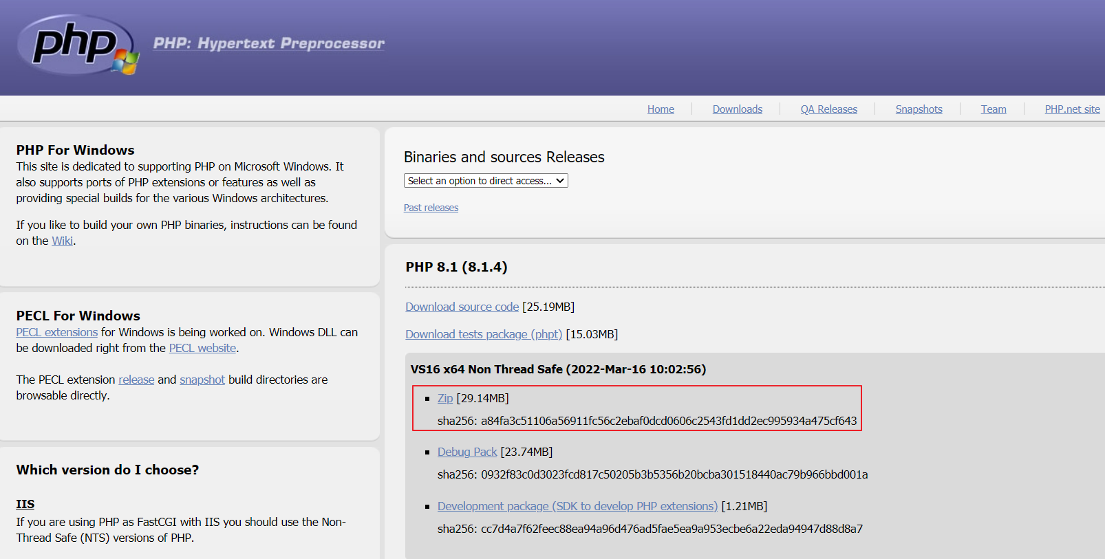 php 다운로드 ☞ PHP For Windows: Binaries and sources Releases