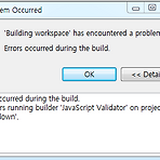 ↑에러창 해결 방법 1. 첫번째 방법은 전체 자바스크립트 밸리데이터를 해제하는 방법이다. 프로젝트 우클릭 or 프로젝트 선택 후 알트+엔터 → Properties → Builders → JavaScript Validator 체크 해제. 해결 방법 2. 두번째 방법은 일일히 해당 자바스크립트 파일의 밸리데이터를 제외시키는 방법이다. 프로젝트 우클릭 or 프로젝트 선택 후 알트+엔터 → Properties → JavaScript → Include Path → Source → 프로젝트 선택 → Excluded 선택 → 오른쪽의 Edit 클릭 → 프로젝트 안에 있는 자바스크립트 파일을 선택해서 해제하려면 Inclusion patterns에서 ADD 클릭 후 자바스크립트 파일 선택 Finish, 프로젝트에 추가할..